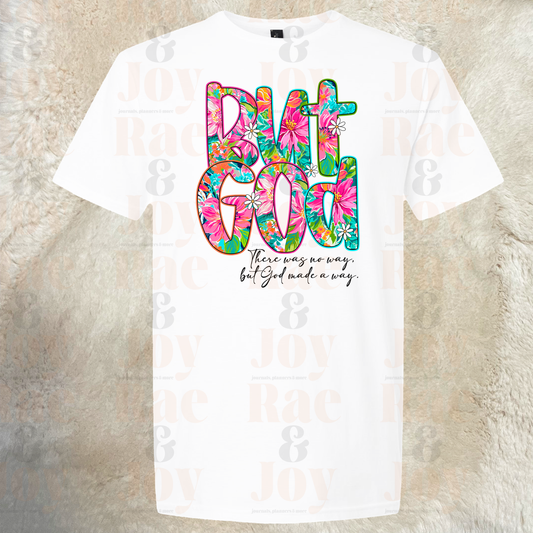 But God Floral Christian T-Shirt Gildan Softstyle | Azalea & White | Sizes S–XXL