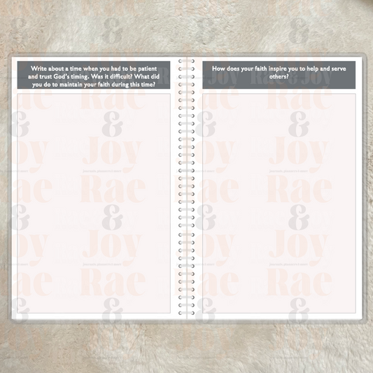 Personalized Faith Reflection Journal - 50 Guided Prompts, Handcrafted, Customizable Pink & Gray Marble Cover, 5.5x8.5