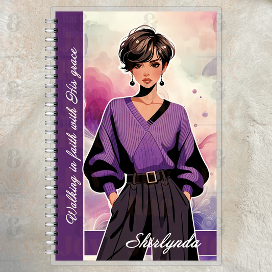 Walking in Faith - Personalized Undated Planner with Prayer Board, 12 Months, Pink & Purple Motif, 2 Corinthians 5:7